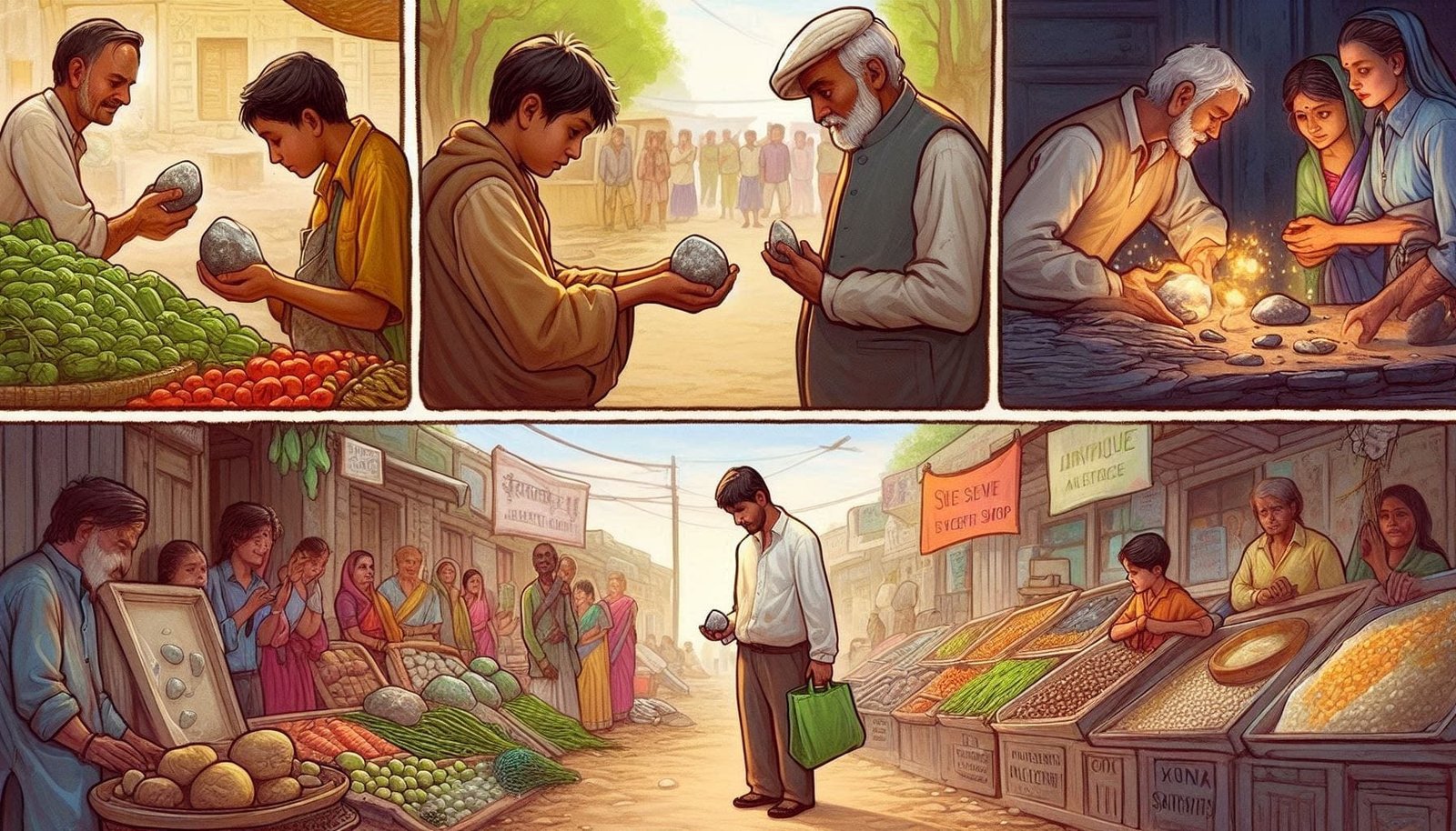 છોકરાએ ઘરે આવીને એના પપ્પાને બધી વાત કરી. પિતાએ આ જ પથ્થર સાથે દીકરાને હવે એન્ટીક વસ્તુઓના વેપારી પાસે મોકલ્યો. છોકરાએ જૂની પૂરાણી વસ્તુઓના વેપારીને પેલો પથ્થર બતાવ્યો એટલે વેપારીએ યુવાનને પથ્થરનો ભાવ પૂછ્યો. યુવાને પોતાની બે આંગળી બતાવી. વેપારીએ કહ્યું, “બે હજાર રૂપિયામાં મને કોઈ વાંધો નથી”